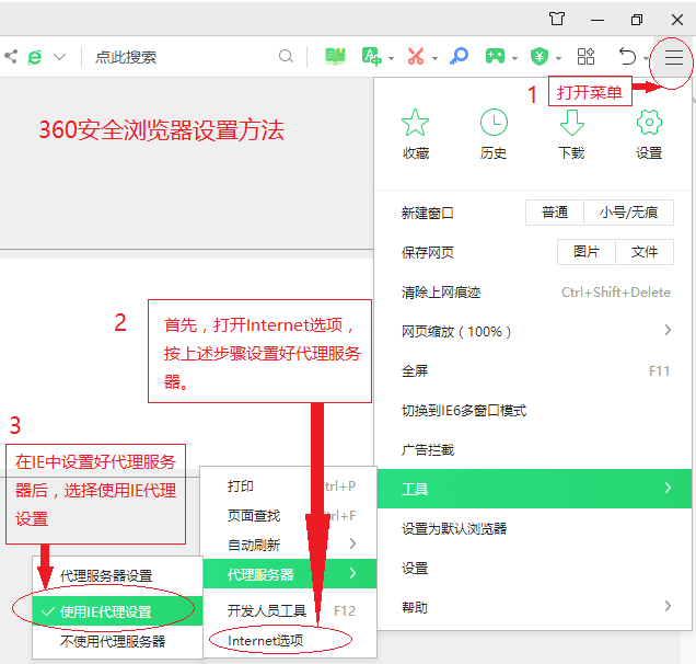 请按步骤1-4设置好IE代理服务器,然后在第三方浏览器中设置为使用IE的代理即可。