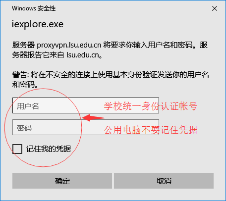 4.然后用IE浏览器打开丽水学院主页,在弹出框中输入校园网用户名和密码后,即可访问学校内部网站。