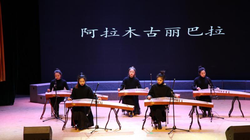 开场的古筝合奏《阿拉木古力巴拉》描绘出了一群美丽的维吾尔族少女翩翩起舞的场景;声乐独唱《大江东去》气势恢宏澎湃;双排键独奏《自由》以独特、多样化的声音形式掀起了现场的一个小高潮;钢琴小提琴协奏《查尔达什舞曲》悠扬舒缓,展现出一幅匈牙利人民生活的民俗画面;声乐联唱《饮酒歌》节奏轻快、色彩明亮,充满青春的活力,把音乐会又推向另一个高潮。节目的表演,配以舞美电子大屏幕动态背景,使听觉艺术与视觉艺术完美结合,带给观众一场视听综合的立体审美感受。