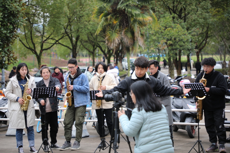“我和我的祖国一刻也不能分割,无论我走到哪里,都流出一首赞歌……”2月22日,新学期开学之际,一场“我和我的祖国”青春快闪活动在学校金桥食府广场和丽水市浙西南革命根据地纪念馆温情上演。20多位师生带着乐器悄然登场,与现场观众共同演绎《我和我的祖国》,歌颂祖国,歌颂浙西南革命精神。