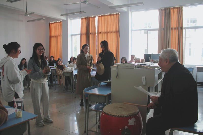 郭秉强老师以鼓为例,为同学们讲述了《青田鱼灯舞》击鼓乐的四大特点,将音乐与舞蹈结合,用歌舞传承中华优秀传统文化,使学生真切体验到民族民间音乐的独特魅力。