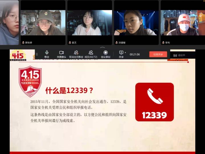 职业技术学院通过召开线上“全民国家安全教育日”主题班会,进一步提高学生安全意识。同时,组织学生在寝室观看国家安全教育宣传片及案例视频,让同学们切身体会国家安全的重要性,知道国家安全与每个人密切相关,要时刻将国家安全放在心上,尽己所能维护国家安全。