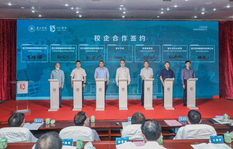 校地合作是促进学校和地方共同发展的有效途径。此次签约分为人才合作、校际合作、校地合作、校企合作四大类别,涉及教育、中医药、智能制造、半导体产业等多个领域。其中,人才合作中,我校与柔性引进的四位高层次人才进行了现场签约。校际合作中,我校将与中国药科大学联合本地龙头企业共同开展厚朴和黄精两种丽水产中药材的化学成分、道地性药材标准与生物学功能研究,为基于丽水特色药材的新药和新产品的研究开发奠定基础。校地合作中,我校分别与市经济开发区、莲都区、缙云县、市经信局签订共建一系列产学研合作平台,推进“校城融合”助力丽水加快跨越式高质量发展。校企合作中,我校将与纳爱斯集团共建生态综合园创新平台,在产业合作、人才引育、技术创新、教育实践等领域展开全面合作。