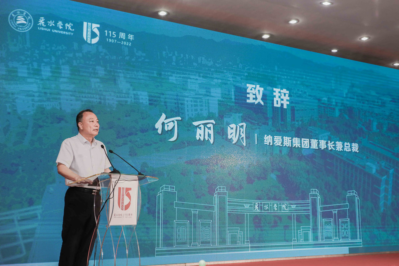 纳爱斯集团董事长兼总裁何丽明在致辞中,祝贺丽水学院办学115周年,并向在座的科研工作者致以节日的祝福。他指出,丽水是“两山”理念的重要萌发地、先行实践地。丽水学院服务生态文明的办学与纳爱斯在生态方面的实践高度契合,双方都致力于投身浙江大花园最美核心区的建设。他坚信,双方的合作是基于共同的追求,彼此都怀揣着一颗振兴丽水的赤诚之心,都有着“两山”转化向未来发展的美好憧憬;双方的合作,定能成为美丽经济的标杆、生态产业的高点,共同谱写出丽水生态文明建设与美丽经济发展的全新篇章。