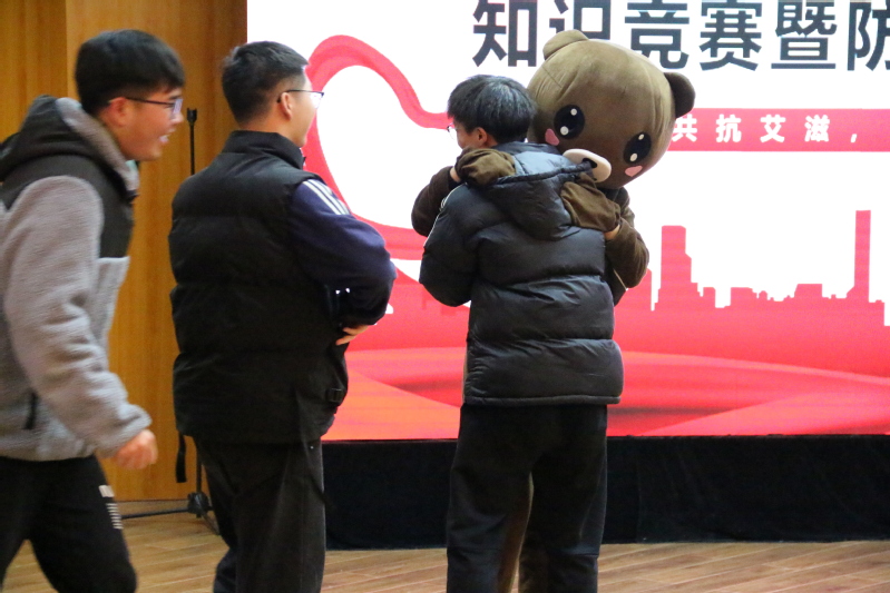 活动还设置了“拥抱爱,推开艾”环节,两个扮演艾滋病患者的大型玩偶吸引了不少同学与之拥抱,并纷纷在画板上写下对艾滋病患者的鼓励,用自己的实际行动减少大众对艾滋病患者的偏见。现场还向同学们发放了防艾宣传手册,组织同学们开展防艾签名活动。