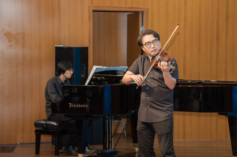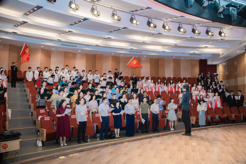 活动现场,我校音乐学院博士人才进行了节目展示,朴俊杰、杨卡拉带来小提琴与钢琴合奏《阳光照耀着塔什库尔干》,何梦琳、宋赟带来声乐表演《军营里飞来一只百灵》,音乐学院合唱团带来男声合唱《老人河》。夏伟涛主讲合唱团第一课,开展了声乐基础知识讲座,首期训练《唱支山歌给党听》。活动最后,全场齐唱《唱支山歌给党听》庆祝党的生日。