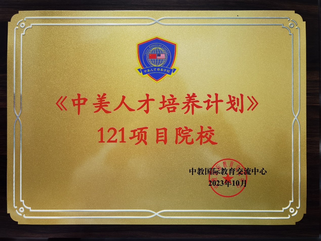 《中美人才培养计划》121项目是教育部所属中国教育国际交流协会(CEAIE)、中教国际教育交流中心(CCIEE)和美国州立大学与学院协会(AASCU)共同管理的新型中美高等教育双向交流与合作项目。项目旨在通过创新人才培养模式,培养国际创新型人才,已成为目前中美高校参与最多、合作与交流领域最为广泛的中美高等教育合作与交流平台。截至到2023年10月,共有190所中美大学加入该项目,其中中方大学146所,美方大学44所。