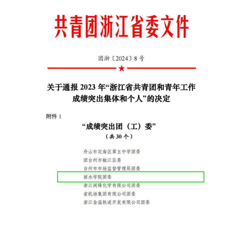 为表彰先进、树立典型,进一步发挥榜样示范引领作用,近日,共青团浙江省委公布了《关于通报2023年“浙江省共青团和青年工作成绩突出集体和个人”的决定》,我校团委获评“成绩突出团(工)委”(全省共30个)。