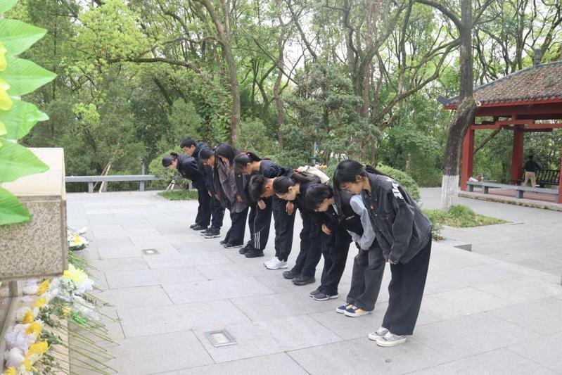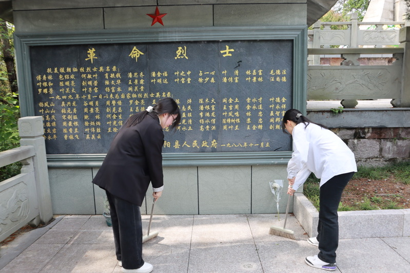 烈士陵园内,松柏笔直苍翠,分外肃穆宁静。在纪念碑前,同学们敬献花圈,鞠躬默哀,以鲜花表达无上崇敬,以静默寄托无限哀思。这里安放着革命先烈的骨灰,篆刻着革命先烈的姓名,“为国牺牲永垂不朽”八个大字赫然在目,同学们在此感怀革命志士的信仰、忠贞、崇高和不朽,为源远流长、坚韧不屈的民族精神而深深撼动。在学生党员的讲述下,同学们重温了浙西南挺进师的英勇事迹,深刻体会了中国共产党人对理想信念的坚守和艰苦奋斗、百折不挠的革命精神。大家纷纷表示,历史是最好的教科书,也是最好的清醒剂。青年学子应当铭记历史,自律自强,实干笃行,以浙西南革命精神为引领,以永做新时代“挺进师”的奋进姿态,不断开辟跨越式高质量发展新境界,用火热青春奋力谱写中国式现代化丽水新篇章。“人民为先,祖国至上,誓做栋梁,振兴中华……”祭扫活动在铿锵有力的宣誓声中结束。