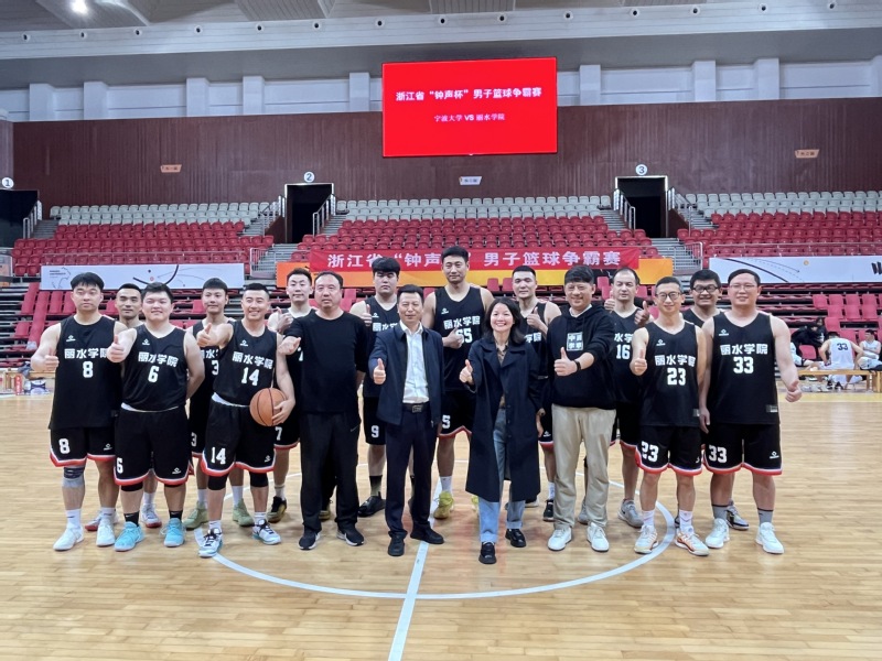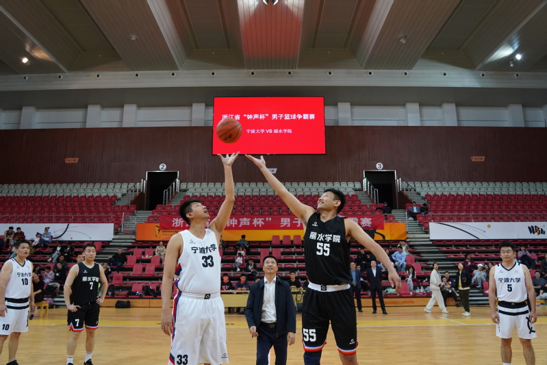 日前,浙江省首届“钟声杯”男子篮球争霸赛B区第四轮比赛在宁波大学体育馆举行,丽水学院对阵宁波大学,校党委副书记、工会主席王赳亲临赛场为队员们加油鼓劲,校党委委员、组织部长赵卫川为比赛开球。最终,我校以97:88险胜宁波大学,获得B赛区冠军,将于11月11日与A区冠军浙江大学进行总决赛。