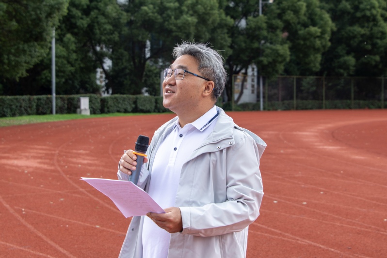 在丽水出征前,副校长胡锋吉,党委委员、统战部部长季忠苑在我校东区操场欢送民族体育运动健儿。