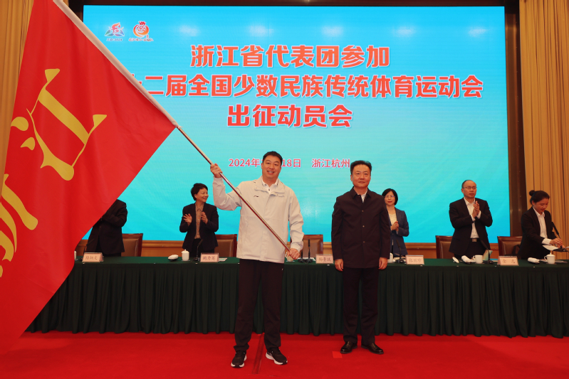 出征动员会上,珍珠球队运动员雷茁涵、板鞋竞速教练俞小亚、民族武术领队郑祥钢分别代表运动员、教练员和领队作表态发言,他们表示,在本次运动会上将发扬团结拼搏、勇创佳绩的优良作风,端正赛风赛纪,积极参与,不断总结经验、超越进取,力争实现浙江省代表团新突破,为浙江民族传统体育事业的发展贡献力量。