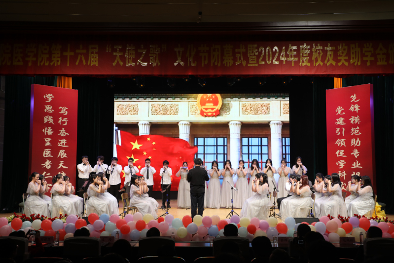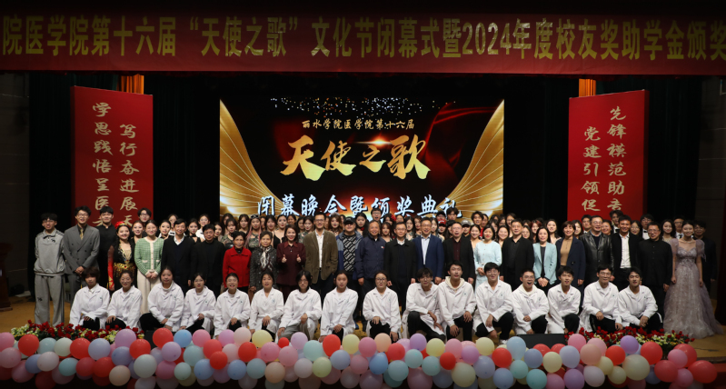 11月23日晚,医学院第十六届“天使之歌”文化节闭幕式暨 2024 年度校友奖助学金颁奖典礼在学术报告厅举行。活动以“医心筑梦启新程 青春笃行谱华章”为主题,校党委委员、宣传部部长廖峰,原医学院长王伟杰,校友代表浦江口腔医院院长于国跃,杭州校友会负责人、党群工作部副部长、省企业传媒协会副会长张辉虎,明皓口腔医院院长王宏,俞鉴口腔诊所负责人俞鉴,丽水市卫健委医政处处长毛炳林,吴丽华口腔诊所负责人吴丽华,浙江省人民医院主任医师外科博士金丽明,玫琳凯公司销售经理夏陈珠,杭州口腔医院丽水分院院长王春红等出席活动。