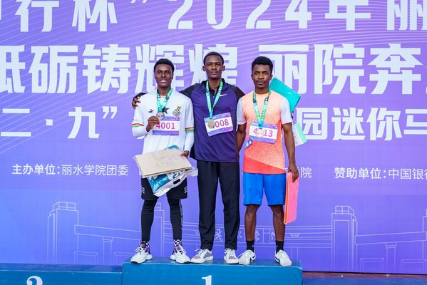 12月6日,我校举办“中行杯”2024年丽水学院“廿载砥砺铸辉煌 丽院奔跑新征程‘一二·九’运动季”校园迷你马拉松赛。起跑仪式在西区田径场举行,我校副校长胡锋吉,党委委员、统战部部长季忠苑,中国银行丽水市分行高级经理胡叶菁,丽水人民路支行行长官红燕,我校工会、团委负责人等出席活动。