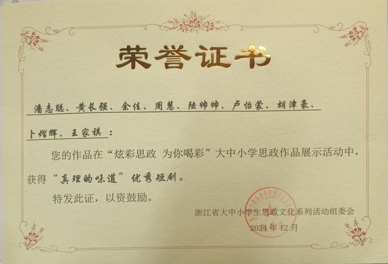 近日,由浙江省教育厅主办的“炫彩思政 为你喝彩”大中小学思政作品展示活动圆满落幕。丽水学院原创短剧作品《我想不明白》从全省高校21部参赛作品中脱颖而出,荣获“真理的味道”优秀短剧。