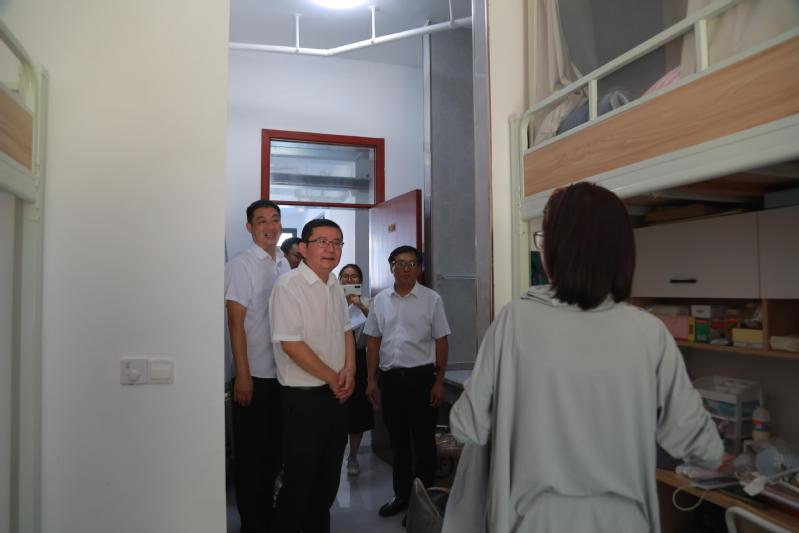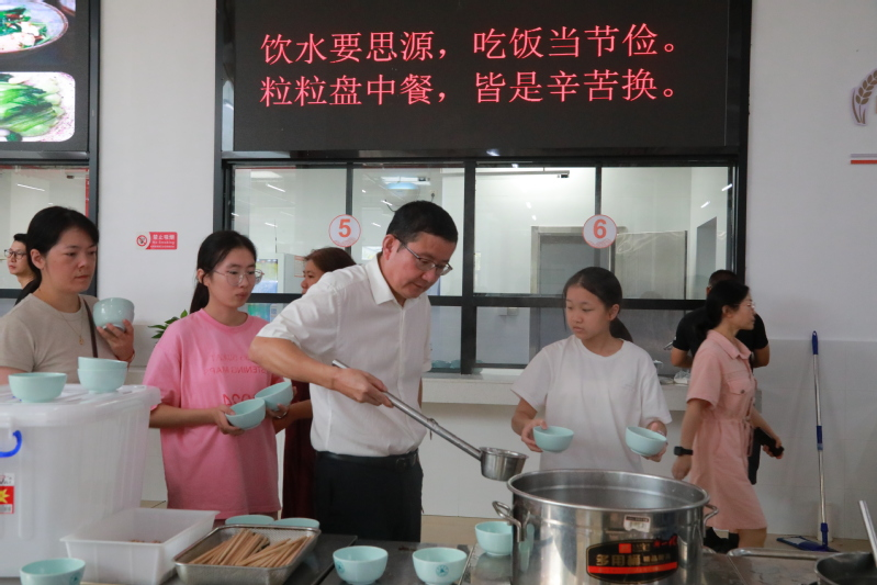 在松阳校区二期工程建设现场,李俊杰详细询问工程进度、质量管控及功能规划等情况,要求施工单位与校区协同配合,确保项目如期交付使用,为师生提供更优质的教学生活环境;他走进学生寝室,与同学们亲切交流,关切询问住宿条件、开学适应情况及实际需求;在学生食堂,实地察看食材供应、菜品质量、就餐环境及服务保障细节,与师生共同用餐,对校区后勤团队高效有序的工作给予肯定。