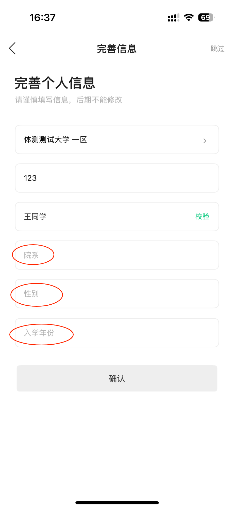 注意:所有信息务必如实填写