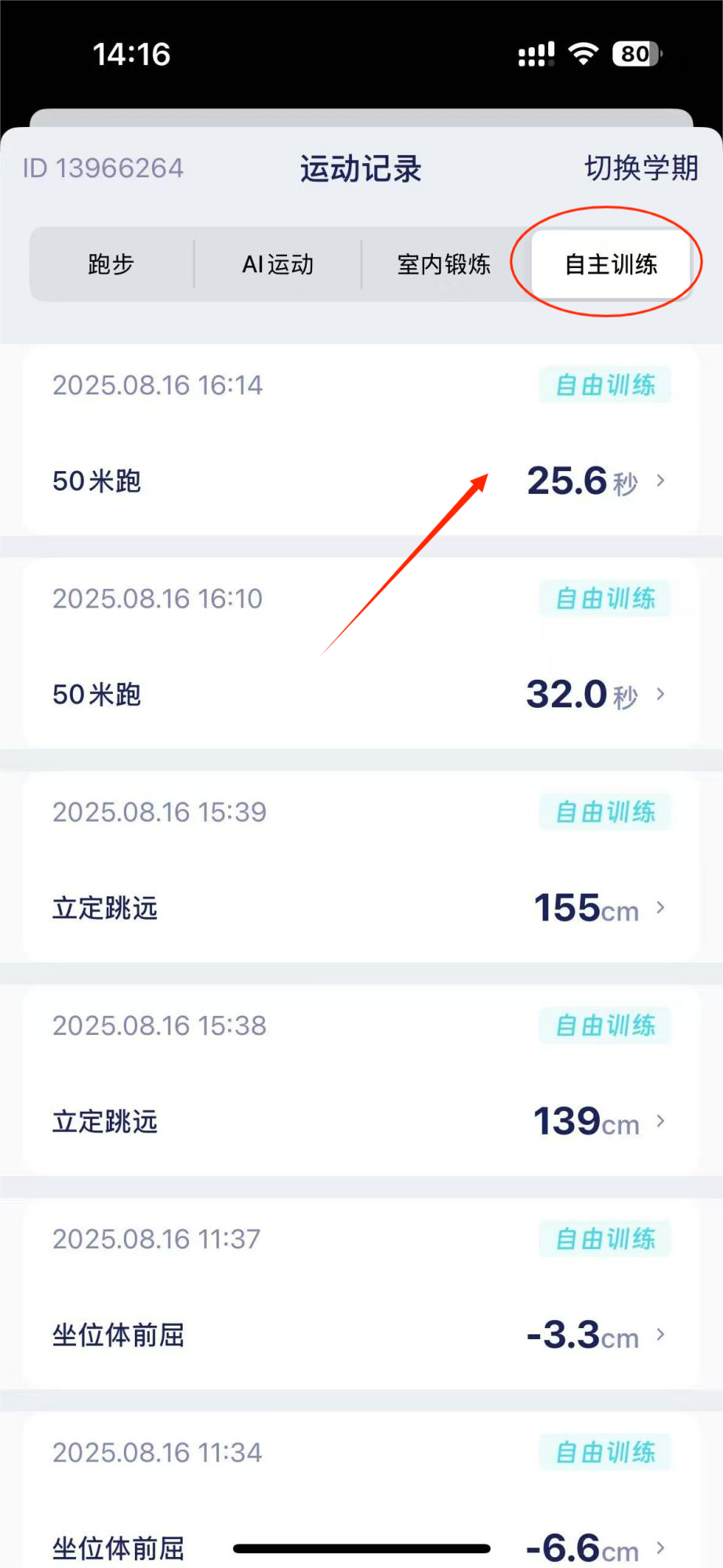 查看自主训练记录