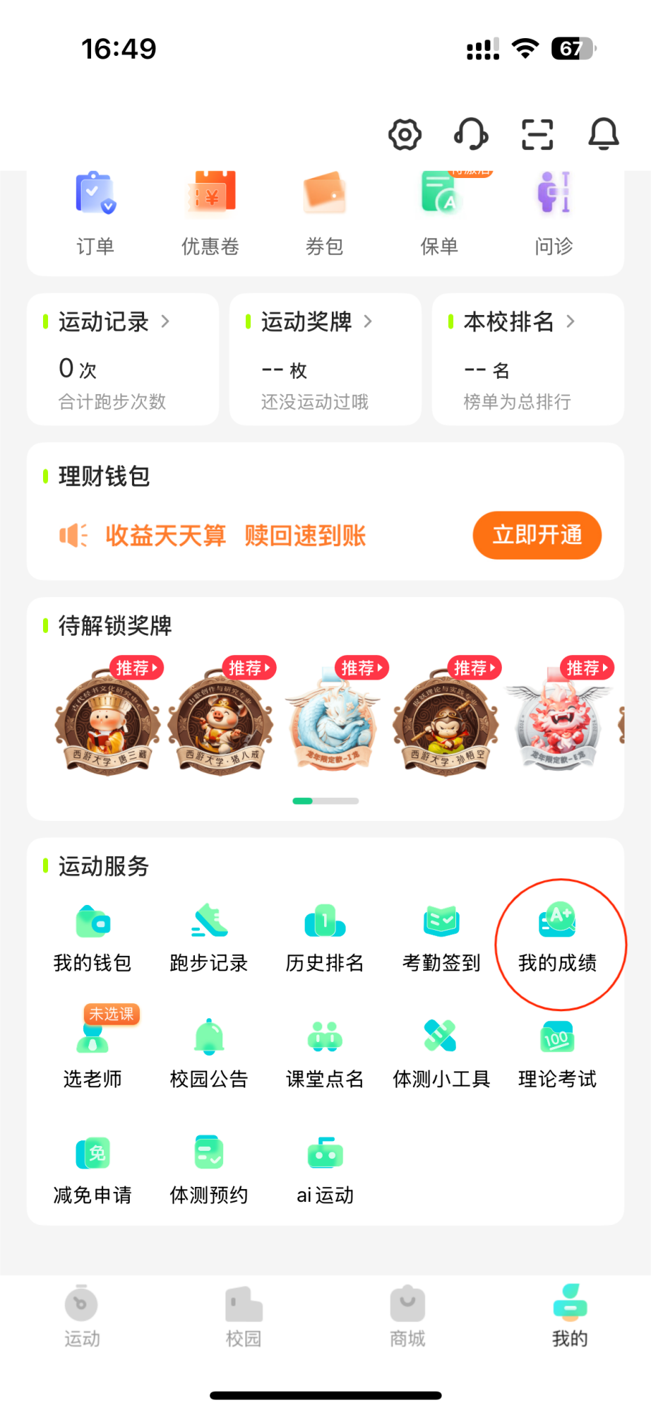 (鸿蒙、安卓、苹果)应用市场搜索“运动世界校园”下载