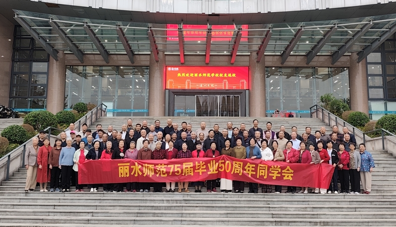 10月20日,丽水师范75届数理科、中文科两个班级校友返校举行毕业50周年同学会。金秋十月,感恩母校师恩。