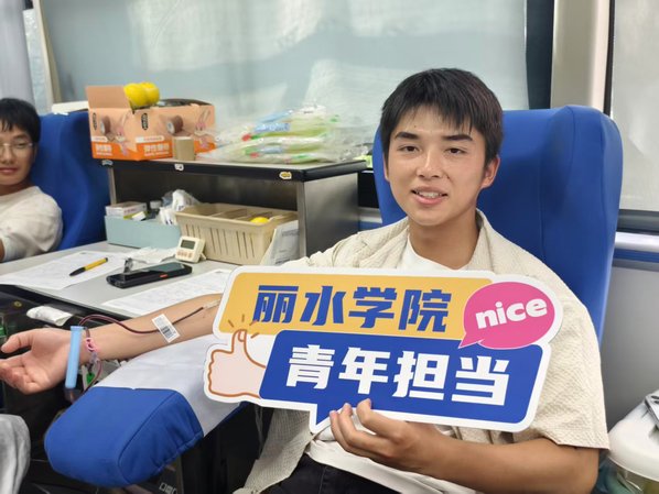公益课堂的知识滋养,迅速转化为次日的爱心行动。10月15日上午,丽水市中心血站献血车驶入校园,在工学院大楼和图书馆门口分别设立采血点。在校青志“小水滴”志愿者引导下,同学们顺利完成填表、化验、采血等流程,紧张疑虑化为奉献热情。志愿者全程递水送点心并给予关怀,现场有初次献血者的坚定、“热血老兵”的从容,更有“热血天团”集体参与,爱心持续传递。
