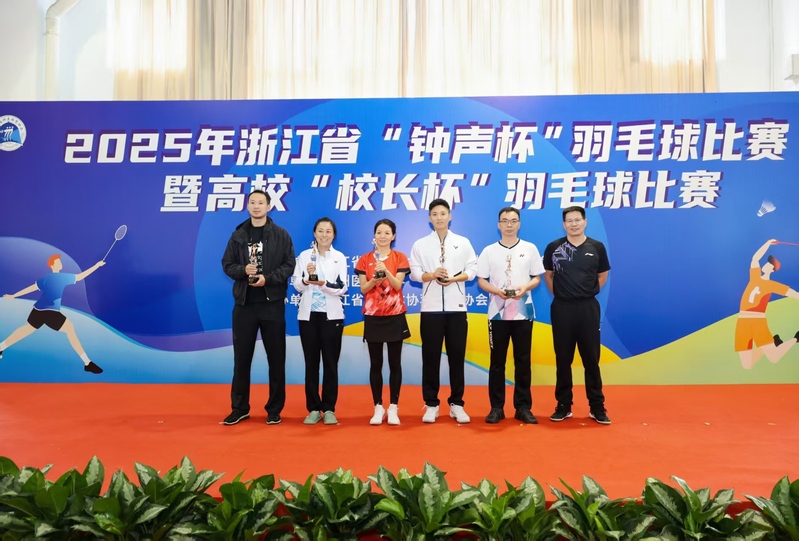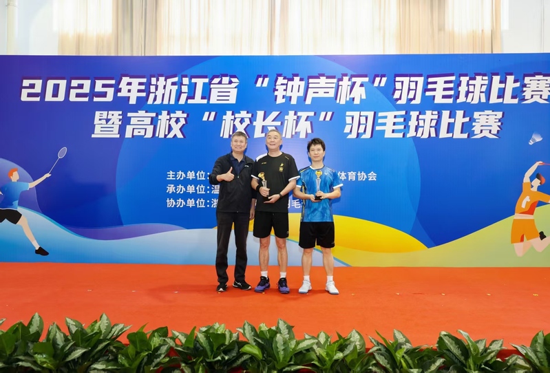 10月23日至25日,为期3天的2025年浙江省“钟声杯”羽毛球赛暨高校“校长杯”羽毛球比赛在温州医科大学举行。校党委副书记叶华松、纪委书记鲁剑伟带领我校代表队在混合团体赛中展现出卓越的团队精神和竞技水平,获得混合团体第四名的好成绩。