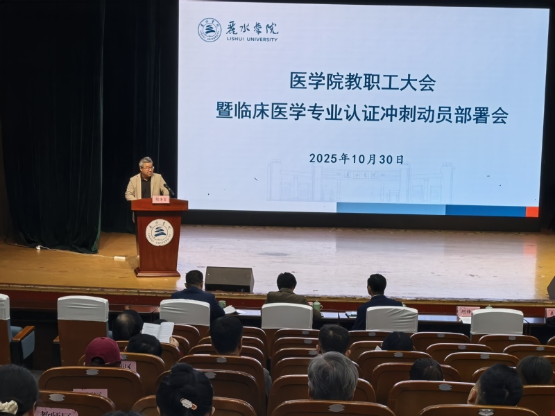 为进一步落实落细专业认证迎评各项工作任务,10月30日,医学院在济世楼学术报告厅召开教职工大会暨临床医学专业认证冲刺动员部署会,副校长、党委委员胡锋吉到场指导并作冲刺动员讲话。