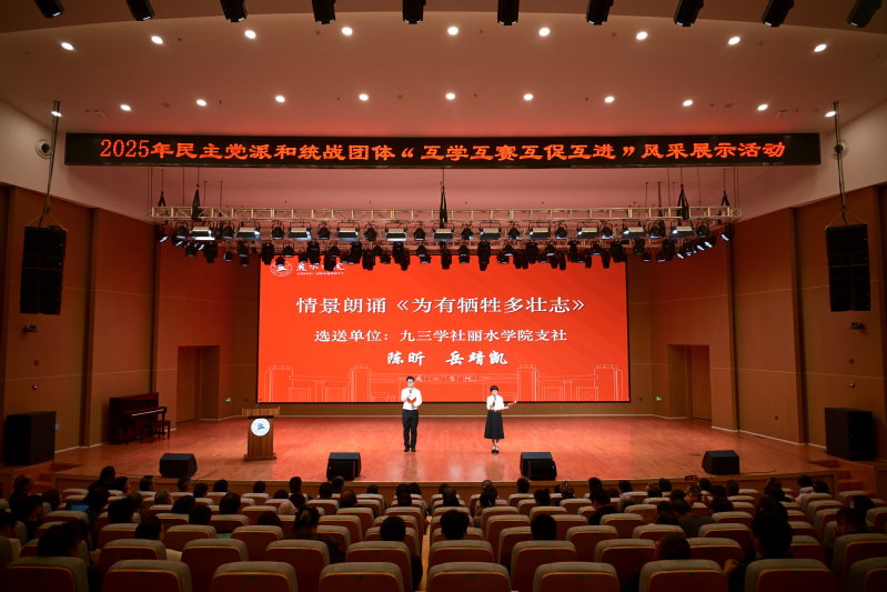 在“互学互赛”环节,7个民主党派和2个统战团体结合自身特色,围绕组织建设、参政议政、社会服务等方面依次进行工作汇报,全面呈现了2025年以来的工作成果与精神风貌。风采展示中,情景朗诵《为有牺牲多壮志》重现革命先辈初心;《丽水民进早期发展中的学院力量》宣讲追溯统战传承;《低空经济破局之旅》宣讲展现了学校服务“新质生产力”的实践成果,呼应“十五五”规划中新兴产业发展要求。