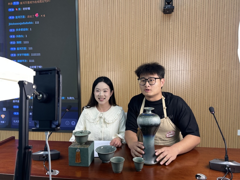 本次大赛坚持“以赛促学、以赛促创”,经过初赛、复赛的激烈角逐,7支优秀团队脱颖而出晋级决赛。决赛现场,参赛队伍在直播区域通过抖音平台开展产品模拟销售,销售产品均为中国青瓷学院学生作品。经过产品展示、场景搭建、实时直播等环节的激烈角逐,最终评选出一等奖1队、二等奖2队、三等奖4队,直播间累计收获5.3万点赞量。