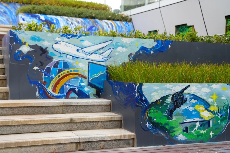 活动自10月启动以来,吸引了同学们的踊跃参与。创作者们以园区公共空间为画布,围绕“环保可持续”“科技未来”“非遗文化”等主题,完成了井盖、墙面、设施装置等多载体的创意彩绘。从宇宙爆炸的磅礴想象到芯片科技的微观呈现,从山水诗意的现代诠释到童趣盎然的科学探索,每一件作品都凝聚着创作者的巧思与热情,让冰冷的公共空间焕发出艺术的温度。最终评选出一等奖一名,二等奖两名,三等奖三名,优秀奖四名,获奖者在掌声中登台领奖,分享创作心得,现场气氛热烈。