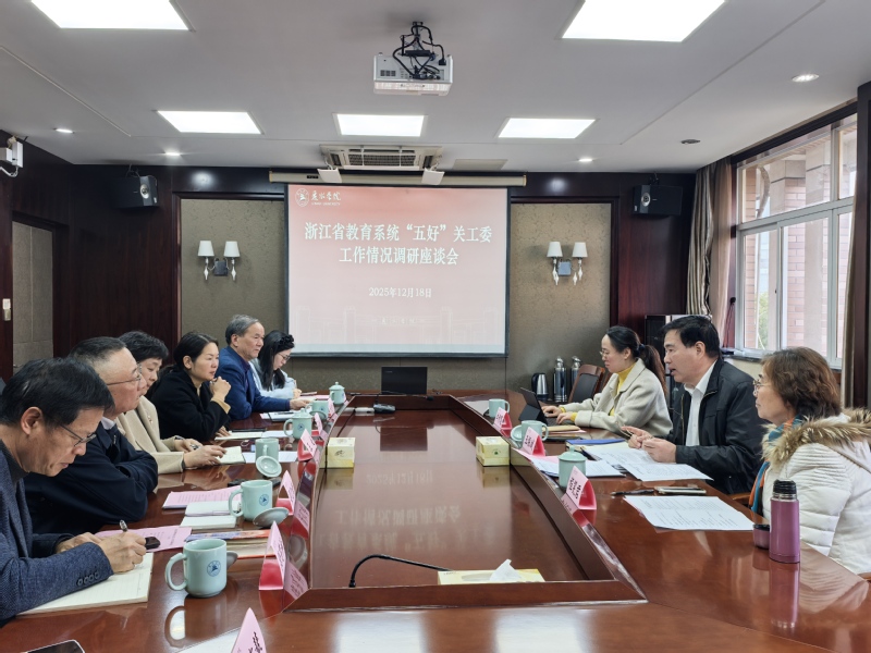 为深入贯彻教育部及浙江省“五好”基层关工委建设工作要求,持续推动关心下一代工作高质量发展,12月18日,浙江省教育厅关工委副主任王振斌、副秘书长程笑君、浙江师范大学关工委秘书长卓青莲一行来校,开展关心下一代工作专项调研。丽水市教育局党委委员、副局长吴敏娟,丽水职业技术学院关工委主任梁忆南,丽水市教育局关工委副主任徐茂林,我校关工委常务副主任徐德钦等陪同调研。校党委副书记王赳主持调研座谈会。