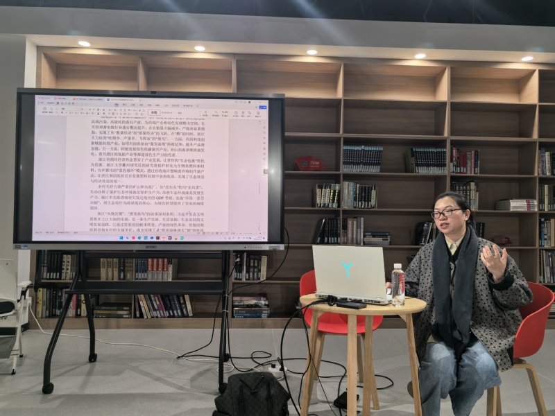 为推动宣讲走深走实,团队赴云和县新岭开展“理论下乡”文艺宣讲,通过“理论+互动+文艺”多元模式,结合实物实景、原创音乐、干部访谈等形式,生动展现乡村振兴与绿色转型实践。在校内,以大学生电影节为契机开展示范宣讲,成员以缙云烧饼产业、梯田调研等鲜活案例,诠释共同富裕与绿色发展路径,并演绎朗诵《我们的青春》,实现与先辈青年的时空对话,强化使命担当。