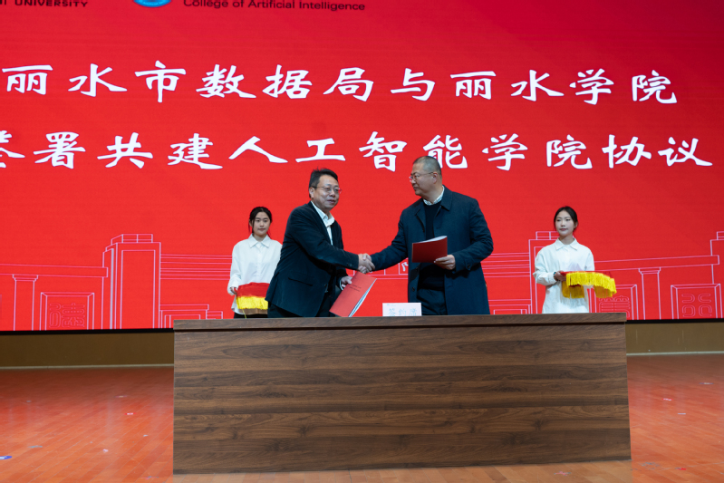 学校与丽水市数据局签约共建人工智能学院。双方将以“数智赋能、产教融合、互利共赢”为原则,聚焦人工智能、数据要素、数据安全、智慧城市及政务服务等重点领域开展广泛合作,致力于将人工智能学院打造成为集人才培养、科学研究、技术创新、社会服务于一体的高水平产业学院,为丽水跨越式高质量发展注入强劲“数智”动力。