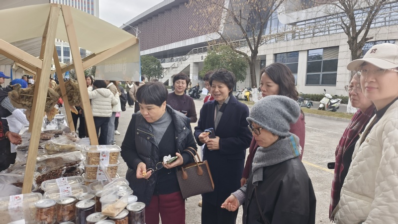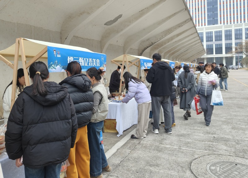 活动现场暖意融融、烟火升腾。本次年货节汇聚了琳琅满目的特色小吃(农产品),从莲都手工香肠、泡精肉、乌米饭、缙云烧饼、缙云土爽面到松阳香肠、景宁畲乡喜饼,从云和雪梨衍生品、白鹤尖非遗下饭菜到龙泉山珍干货、庆元食用菌,30家参展商各展所长,既有陪伴一代代人成长的经典老味道,也有着绿水青山的优质生态农产品,更有融入非遗技艺的创新风味年货礼盒,充分满足了广大教职工品味乡愁、尝鲜寻味、置办年礼的多样需求。