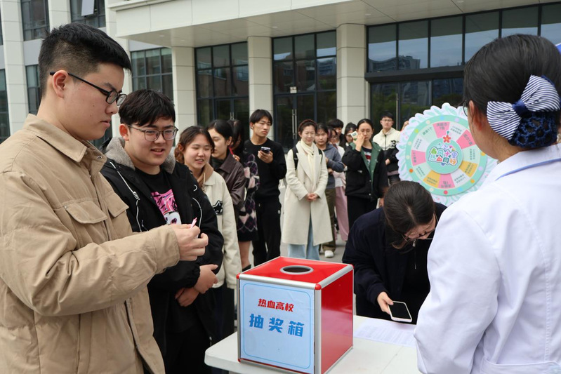 活动现场不仅设置了手工拼豆、幸运转盘等趣味互动环节,还为2025年底参与“热血天团”的47位献血学生设置了专属抽奖活动。惊喜满满的互动,既是对献血者爱心善举的暖心回馈,也让无偿献血的荣誉感与获得感深入人心,持续点燃了现场师生的公益热情。值得一提的是,本次活动还吸引了我校留学生群体踊跃参与。他们以无国界的爱心,为这场春日热血行动增添了温暖而动人的一笔。