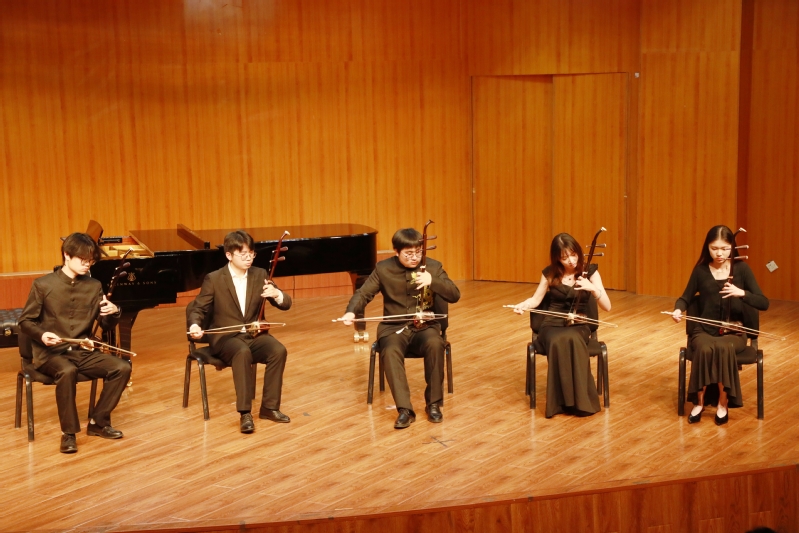 民乐与现代声乐表演亮点纷呈、相得益彰。二胡独奏《兰亭序》温婉雅致,将古典意境与书法韵味融入旋律;胡琴齐奏《战马奔腾》激昂豪迈,尽显民乐的磅礴气势;笛子独奏《扬鞭催马运粮忙》灵动欢快,生动再现丰收景象;各类声乐作品风格各异,既有古典诗意,也有现代活力,全面展现了新时代青年学子的青春风貌与艺术追求。