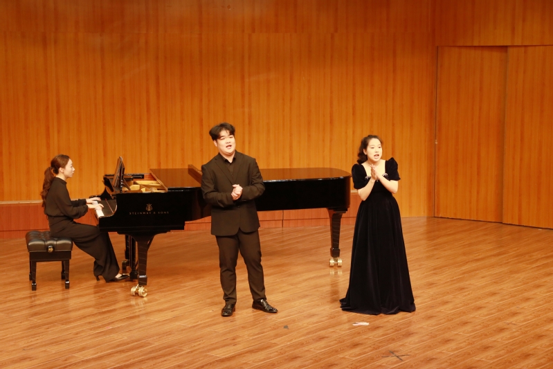 音乐会以红色经典篇章启幕,《映山红》《天边有颗闪亮的星》《嘉陵江上》等经典曲目依次登台。学子们以饱满的情感、专业的演绎,将红色基因与爱国情怀融入每一段旋律,生动诠释了经典作品的精神内涵,让现场观众在悠扬歌声中感悟革命岁月的赤诚与坚守,开篇便收获了经久不息的掌声。