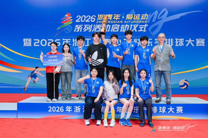 近日,2026年度“浙青年·爱运动”系列活动启动仪式暨浙江省青少年快乐气排球大赛在杭州师范大学仓前校区体育馆圆满落幕。我校学生气排球队在本次大赛中奋勇拼搏,最终荣获甲组(本科院校组)季军,充分展现了我校学子昂扬向上的精神风貌和良好的团队协作能力。