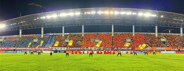 表演现场,战鼓齐鸣、旌旗猎猎,同学们身着表演服饰,精神抖擞、气势如虹,完整呈现戚家军鸳鸯阵的威武阵型与战斗风貌,精准还原处州兵忠勇果敢的精神气质。铿锵阵型、飒爽姿态与激昂氛围完美融合,瞬间点燃全场热情,赢得观众阵阵掌声与喝彩,成为丽水主场一道亮眼的青春风景线,让传统文化在绿茵赛场焕发新生机。